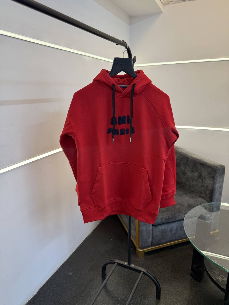 Ami paris oversize imported fleece hoodie with front embroidery branding red