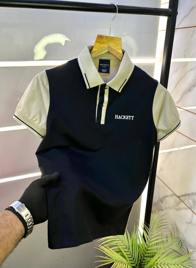 Hacket t London Black Embroidery Back Print Premium Collar Neck T-shirt F2863-BL