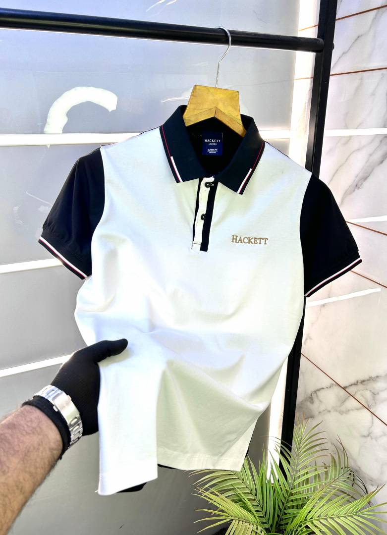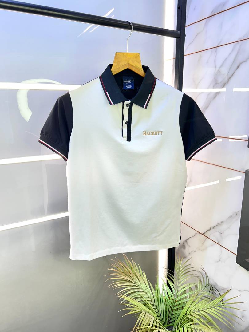 Hacket t London White Embroidery Back Print Premium Collar Neck T-shirt F2863-WH