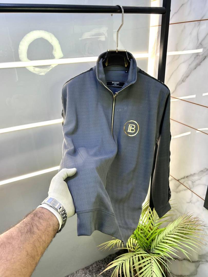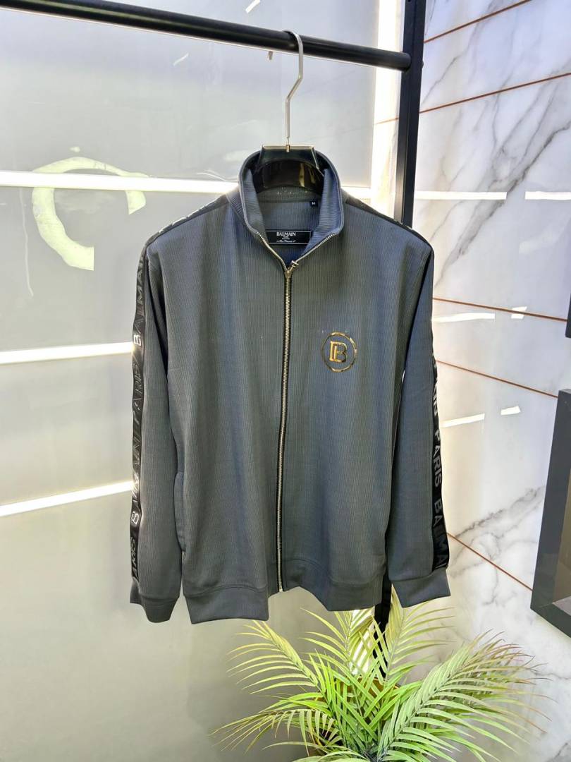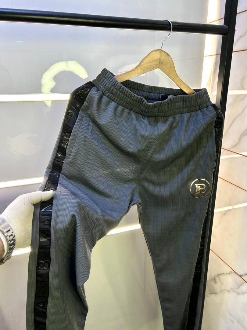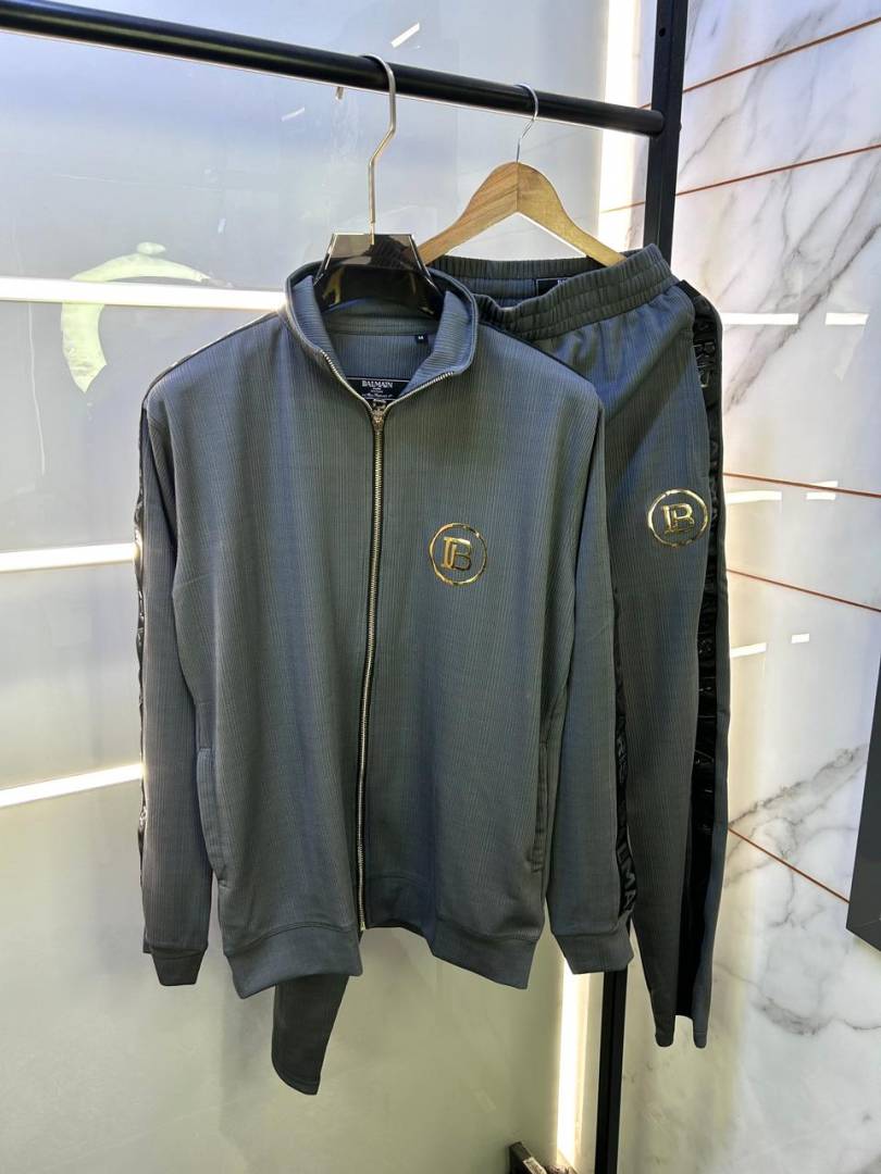 Balmai n Paris Grey Imported Embroidery Logo Premium Track Suit Brand Carry Bag Packing F3017-GY
