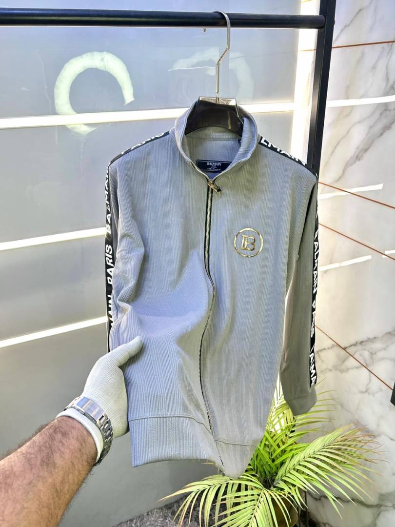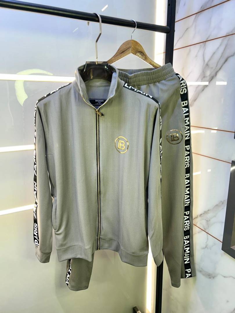 Balmai n Paris Grey Imported Embroidery Logo Premium Track Suit Brand Carry Bag Packing F3017-GY