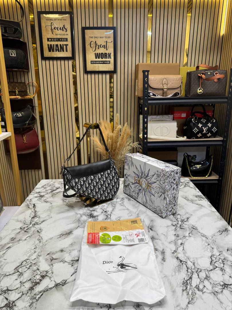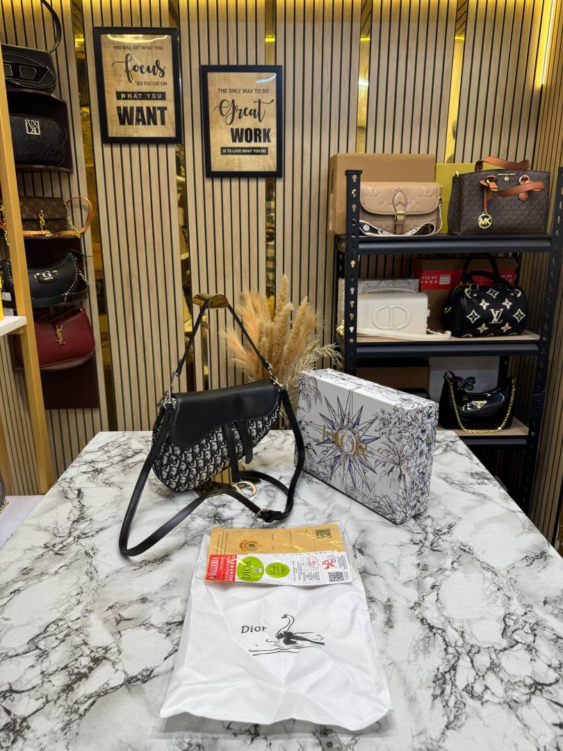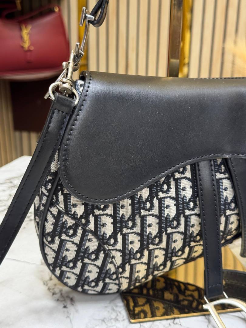 • Christian Dio_r Oblique Saddle Crossbody Bag With Box And Dust Bag (Black)(78812)