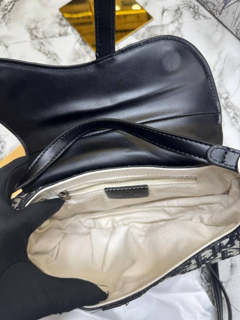 Christian Dio_r Oblique Saddle Crossbody Bag With Box And Dust Bag (Black)(78812)