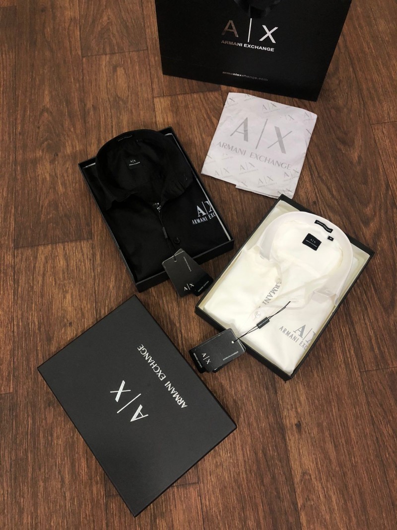 ARMANI EXCHANGE SUPER PREMIUM REFLECTIVE LOGO PRINT SHIRTS STORE ARTICLE WITH PREMIUM ARMANI BOX PACKING &CARRY BAG FABRIC-COTTON LYCRA BRAND FIT SIZES M-38 L-40 Xl-42 Xxl-44