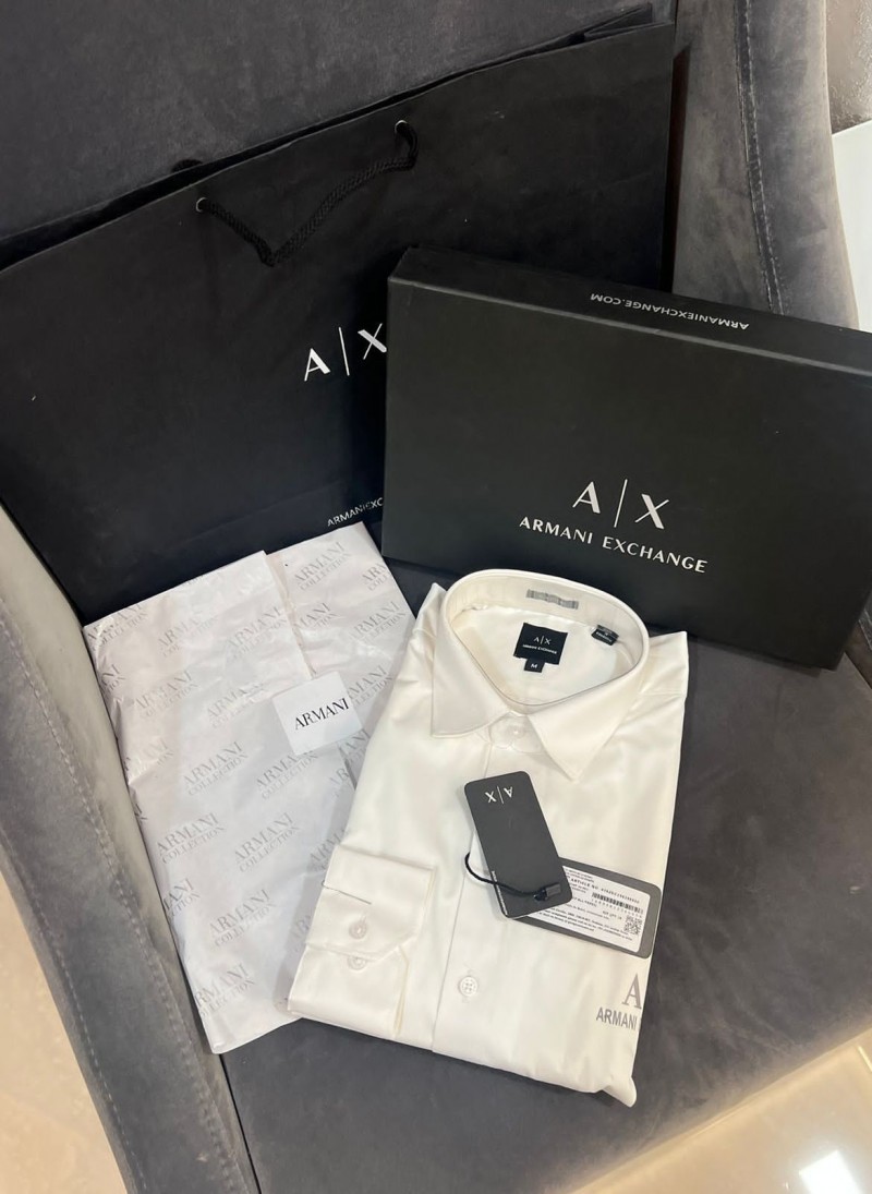 ARMANI EXCHANGE SUPER PREMIUM REFLECTIVE LOGO PRINT SHIRTS STORE ARTICLE WITH PREMIUM ARMANI BOX PACKING &CARRY BAG FABRIC-COTTON LYCRA BRAND FIT SIZES M-38 L-40 Xl-42 Xxl-44