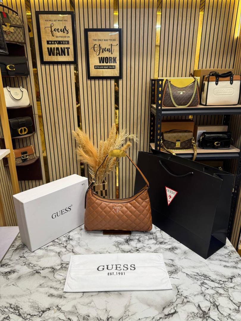 Guess Rianee Shoulder Bag With Box And Dust Bag Including Carry Bag (Brown)