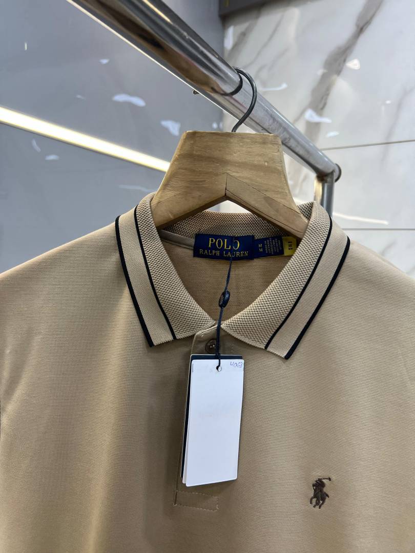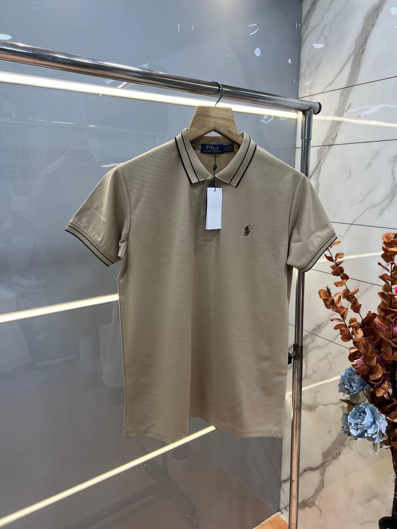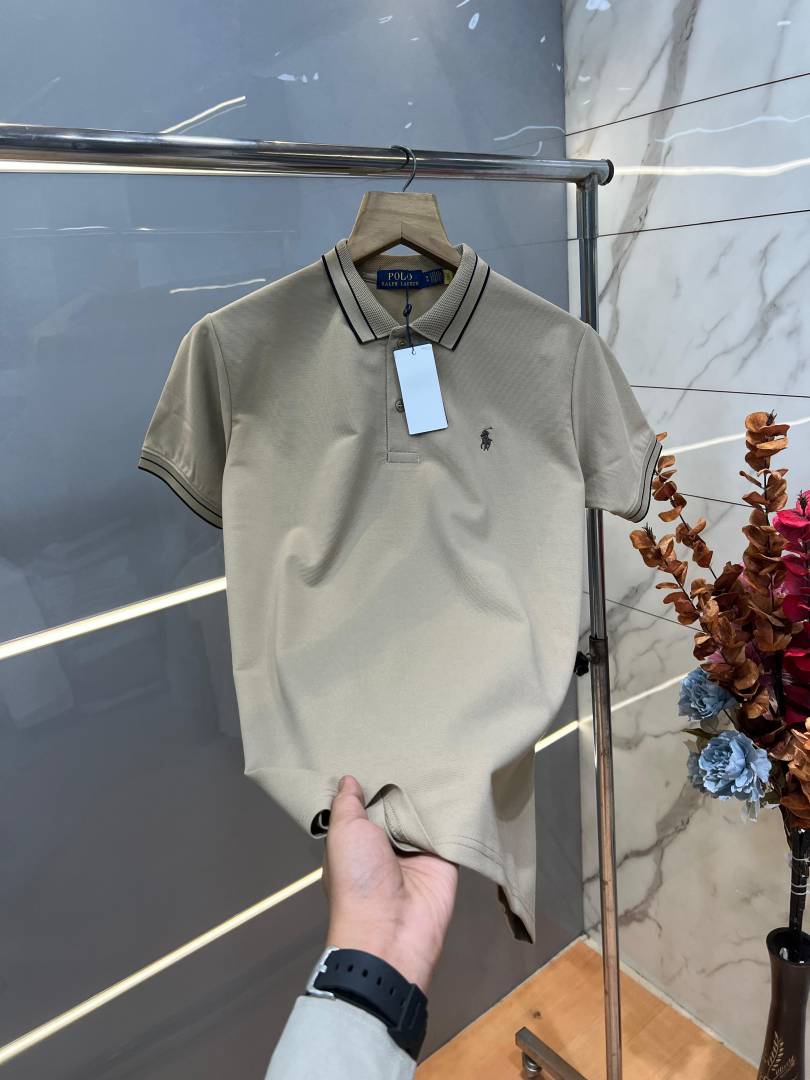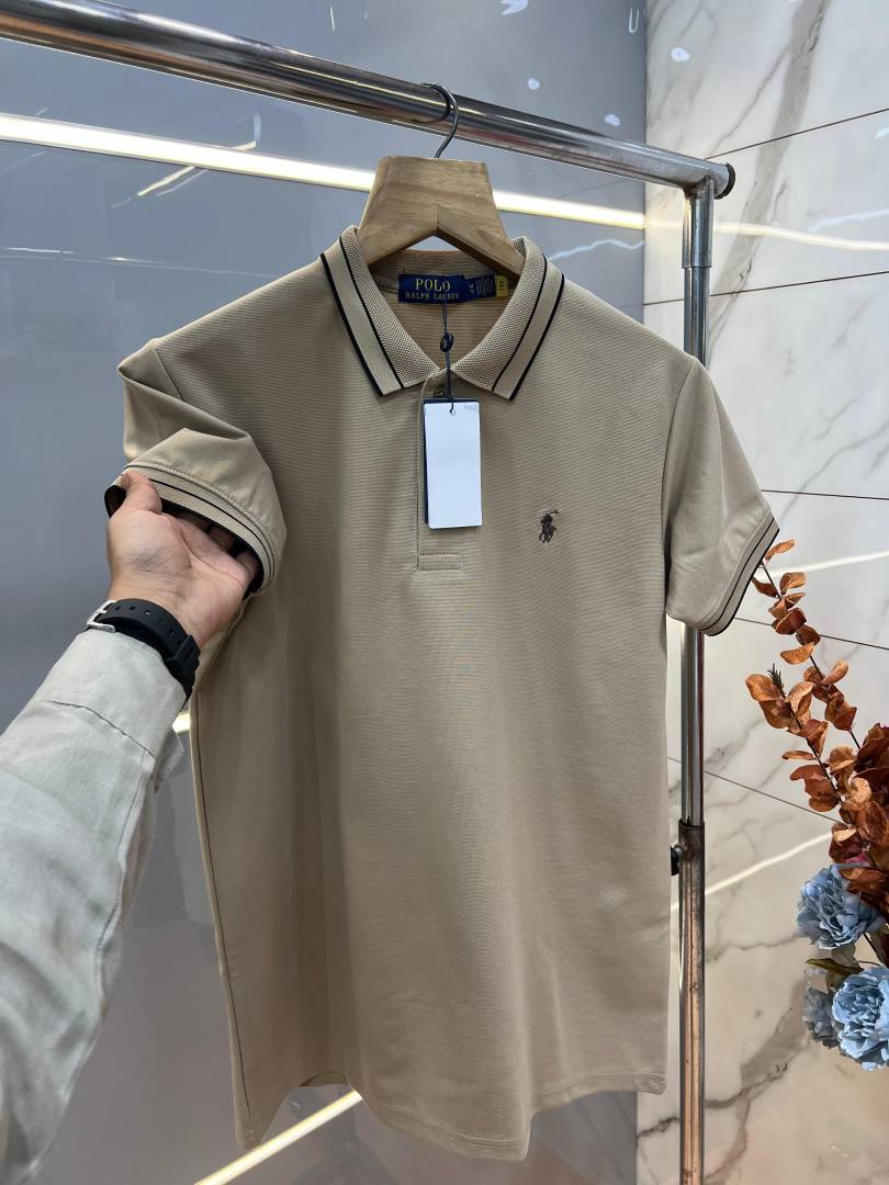 Ralp h Lauren Beige Premium Imported 240 GSM Interlock Lycra Fabric Polo Tshirt with Collar Design and Embroidered Logo 4063