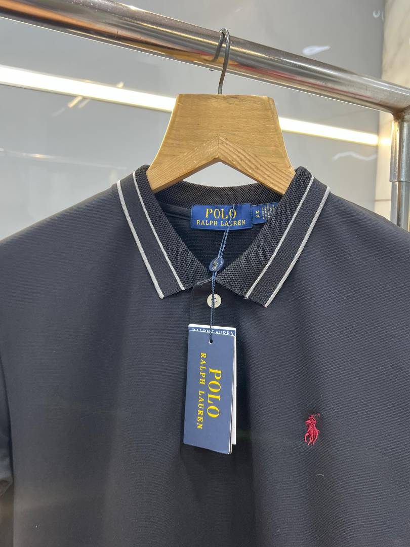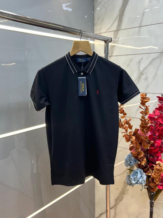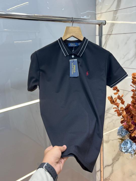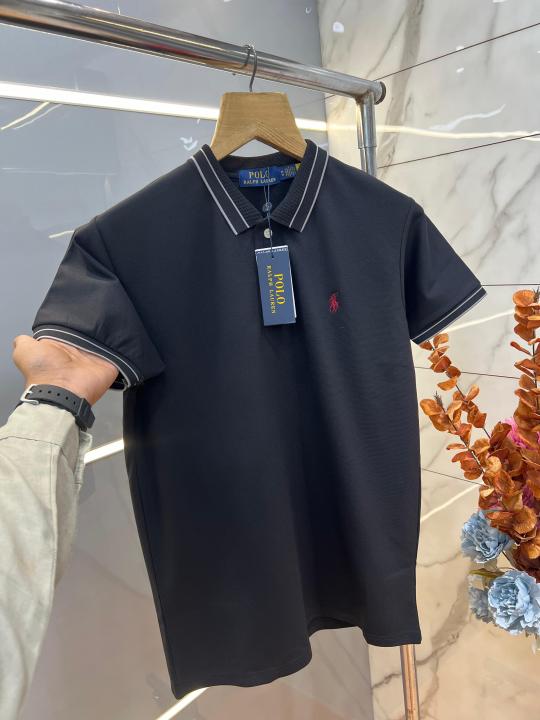 Ralp h Lauren Black Premium Imported 240 GSM Interlock Lycra Fabric Polo Tshirt with Collar Design and Embroidered Logo 4059