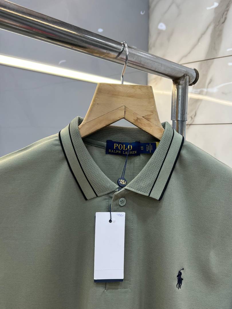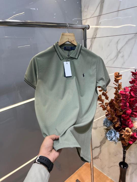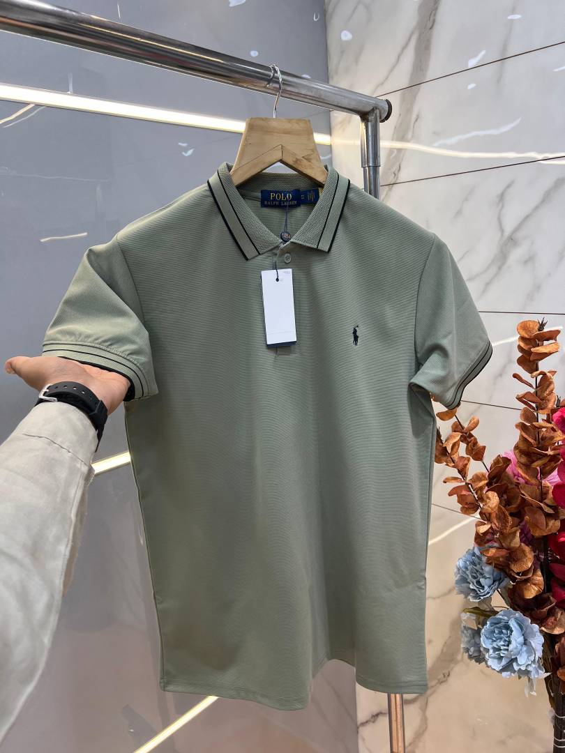 Ralp h Lauren Olive Premium Imported 240 GSM Interlock Lycra Fabric Polo Tshirt with Collar Design and Embroidered Logo 4061
