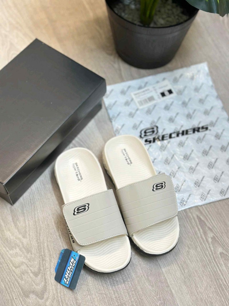 Skecher.s Go Recover Adjust Premium Beige Black Slides
