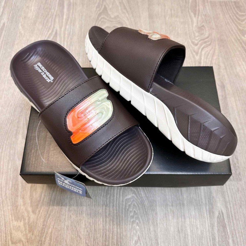 Skecher.s Go Recover Utopo Logo Premium Brown Cream Slides