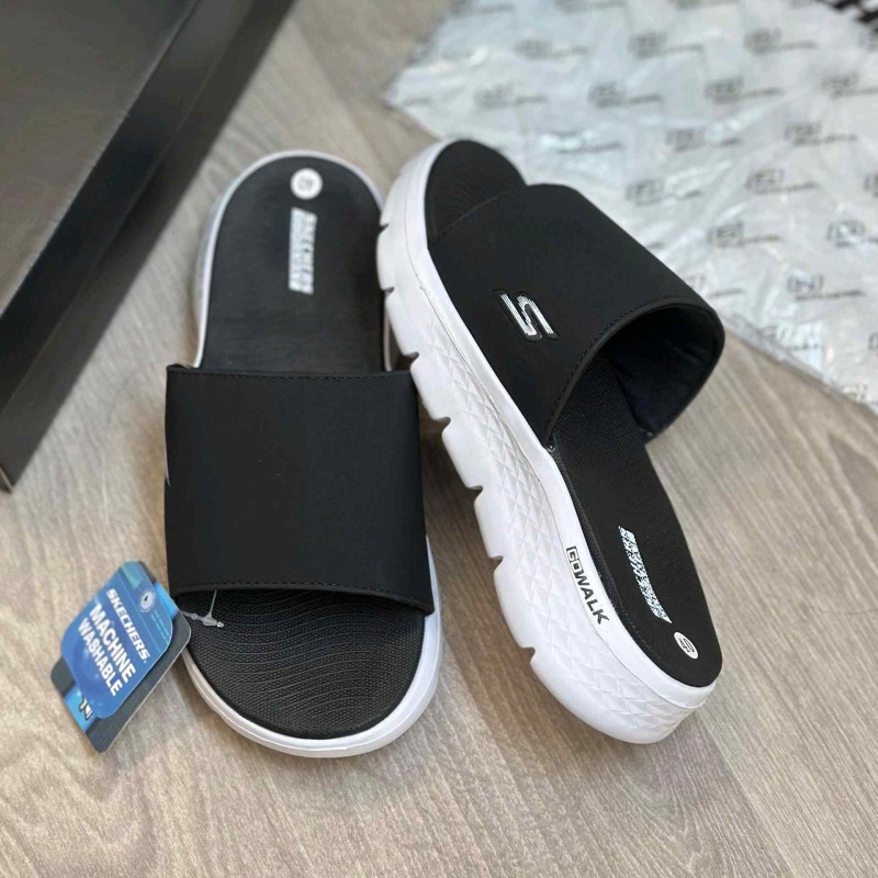 Skecher.s Go Walk Flex Premium Black White Flip Flop