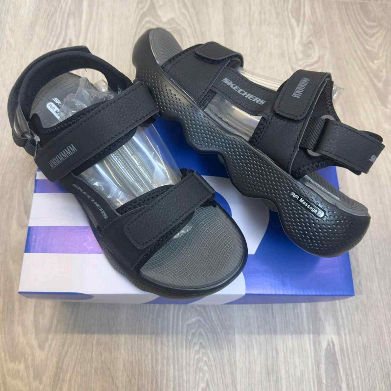 Skecher.s Massage Fit Adjustable Straps All Black Sports Sandal