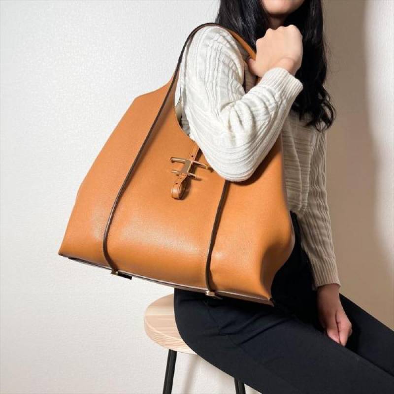 Tods T Timeless Premium Quality Leather Bag With Extra Pouch & OG Magnetic Box With Dust Bag (Tan - 446)