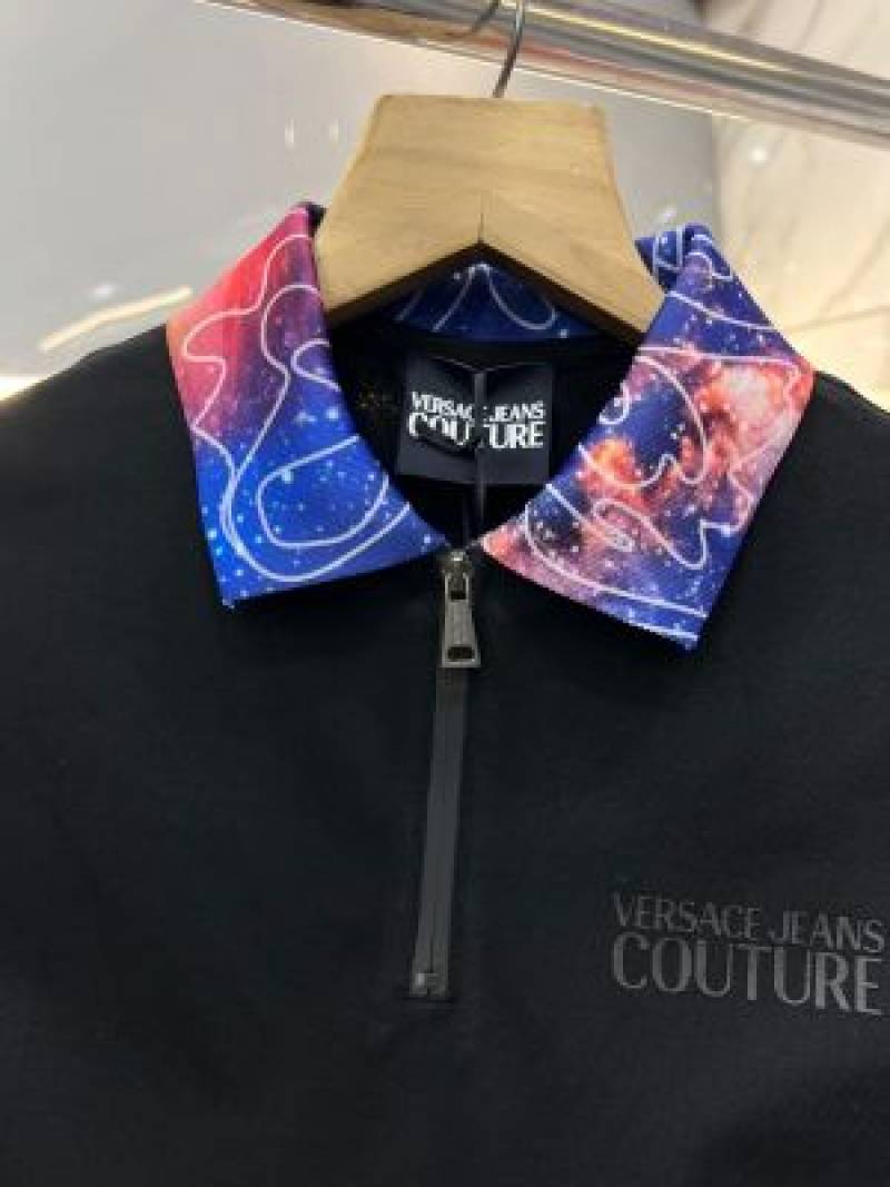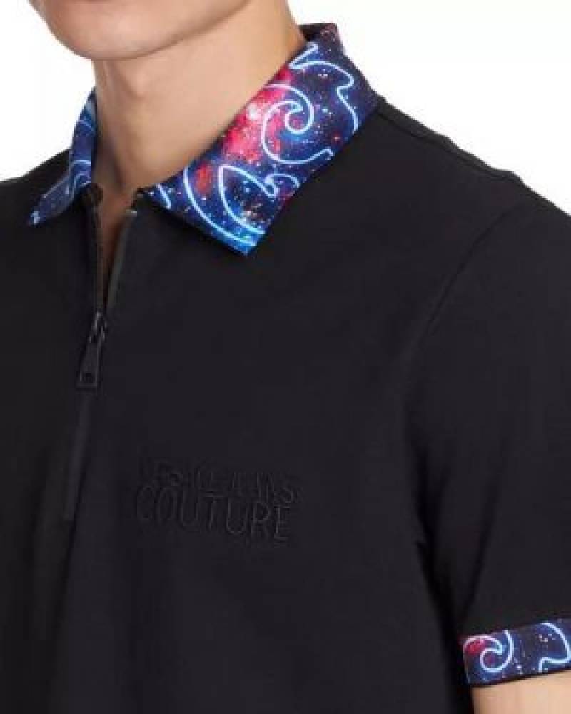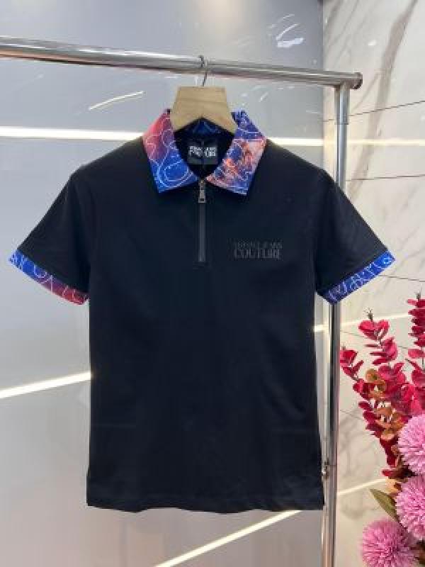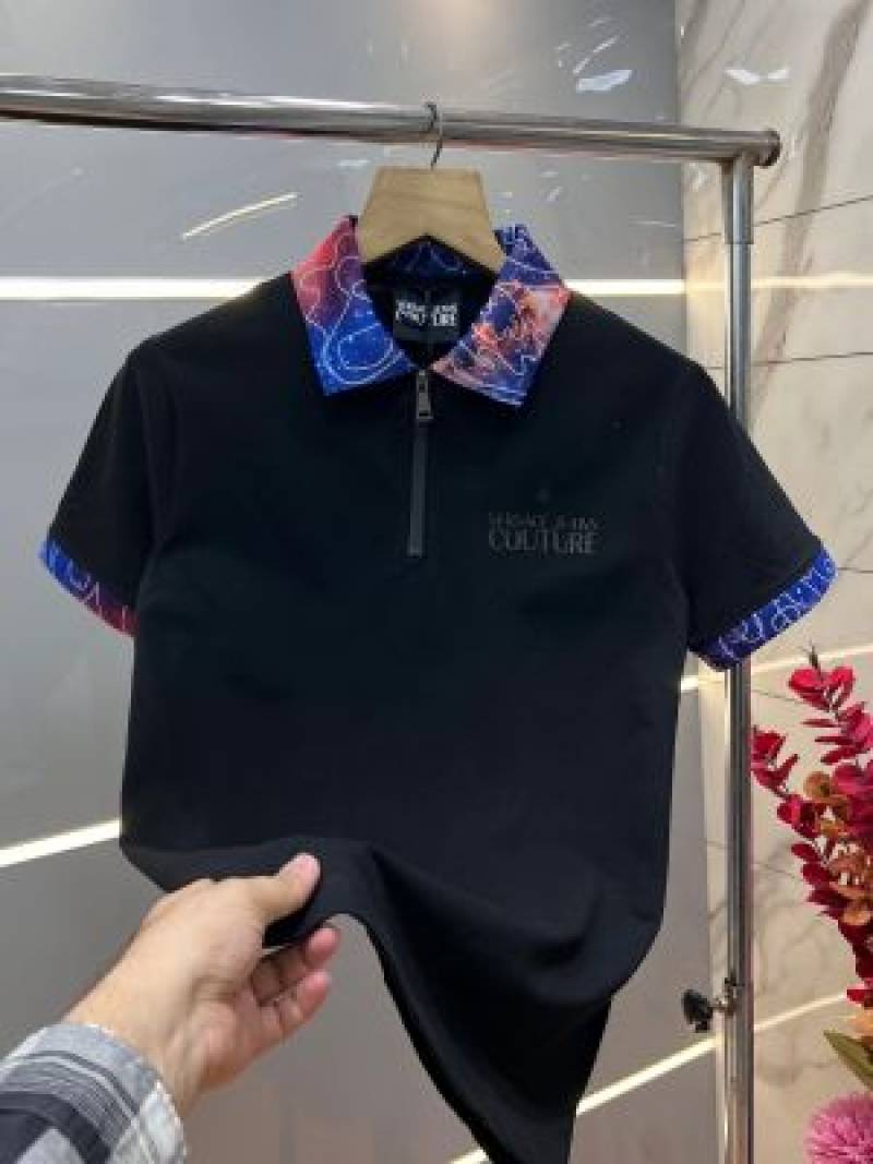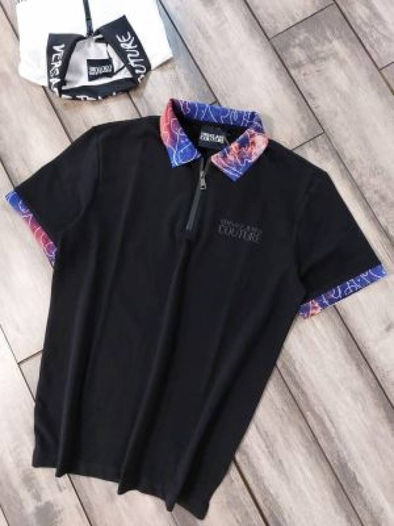 Versac e Black Premium Cotton Pique fabric Polo Tshirt with Collar Design and Emboss Logo Zip Style 3531